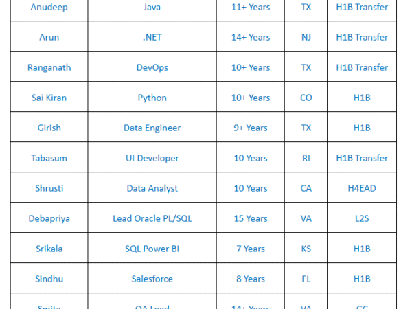 hi , Hope you had a refreshing long weekend. Sharing today’s focused hotlist of consultants who are immediately available and aligned for active demands. You’ll …