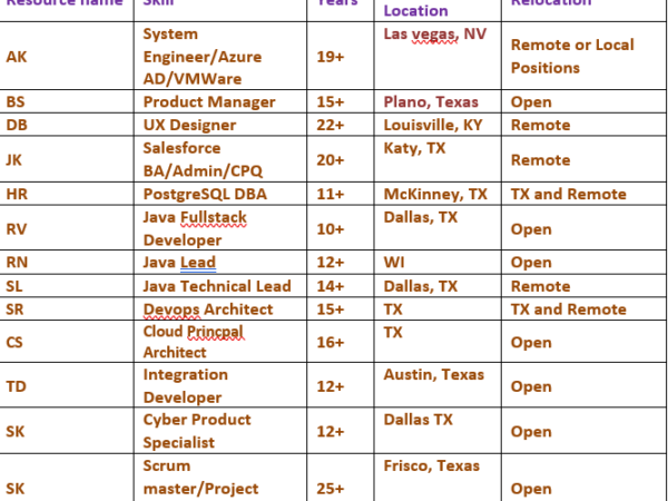 Hlo Folks/Recruiters, Please find below our top consultants currently available for projects. All are immediately available and open to C2C roles. Feel free to reach …